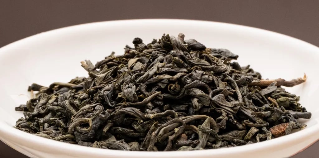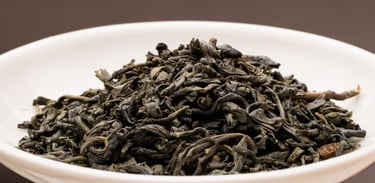 Ceai verde Chun Mee 2g / 200ml apa / 80 grade / 2 min. Ceainic preincalzit (foto Razvan Bulus: Chun Mee inainte de infuzie)