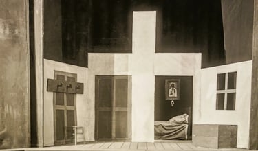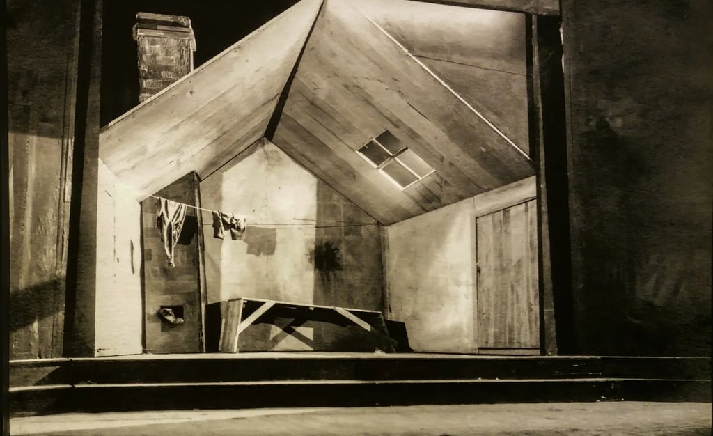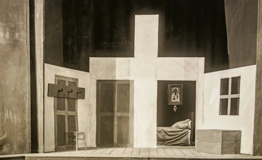 Scenografia realizată în 1927 pentru spectacolul ”Crimă și Pedeapsă”, de Dostoievsky, montat la Teatrul Național din Cernăuți, evocă nu doar un vizual de excepție, ci și o metabolizare anume a universului dostoievskian. Nu stiam aceste fotografii, însă cum m-aș mai putea gândi de acum înainte la Raskolnikov, cel scuturat de frigurile unor stihii morale fără de hotar, altfel decât răscolindu-se în splendoarea geometrică a sărăciei plăsmuită de pensulele lui Lövendal? La sărmana Sonya, captivă între pereții clarobscuri ai singurelor și cumplitelor sale opțiuni. Sau la rânjetul de fiară bolnavă al lui Svidrigailov, sociopatul plin de surprize inexplicabile.