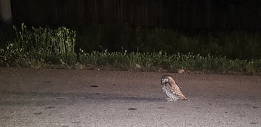 Trecuse bine de miezul nopții, era de acum 1 iulie și noi hoinăream pe lăngă lacurile din Călărași după o scurtă vizită la Dunăre. Pe șosea, o pasăre neclintită la apropierea mașinii. Am oprit și ne-am apropiat. Nu părea în stare să zboare. A sărit în șanțul de pe marginea drumului. Am acoperit-o încet cu o țesătură și am adus-o acasă, urmând ca de dimineață să îi găsim ajutor specializat. La lumină am văzut penajul elegant brun cu pete albe și ochii imenși, de un galben intens, care ne fixau indiferent cum ne mișcam în cameră. Am descoperit că există în apropiere de București un centru specializat în îngrijirea și reabilitarea animalelor sălbatice, numit Visul Luanei. Zelda a fost examinată de medic și am aflat nu are membre rupte, că va fi ținută sub observație și apoi eliberată în habitatul ei natural.